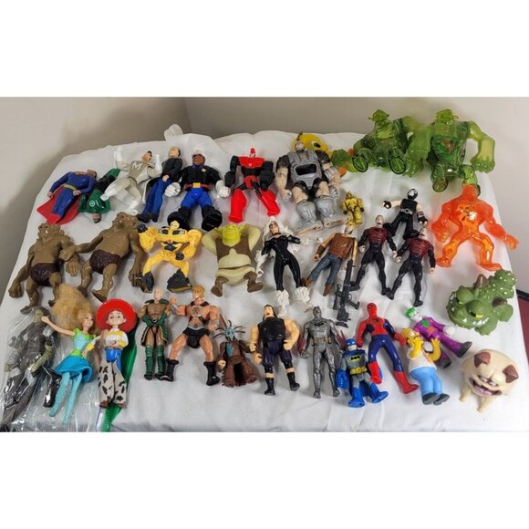 Lot of 34 Misc Action Figures Superhero monsters joker spiderman