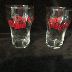 2 Barcelona 1992 Olympic glasses, 2 Coca Cola glasses with red logo and 1 green Coca Cola glass. They are in excellent condition, with no chips or cracks.