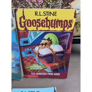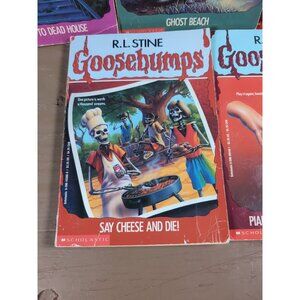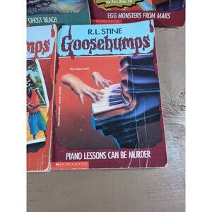 Dive into the world of R.L. Stine's "Goosebumps" with this collection of five first print editions, including books #1, #4, #13, #22, and #42. Perfect for fans of spooky stories and classic children's literature, these paperbacks offer a nostalgic journey through the eerie adventures that have captivated young readers for generations.