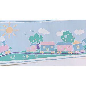 Lot of 5 Nursery Wallpaper Borders – Train & Numbers Pastel – 5 Yards Each NOS