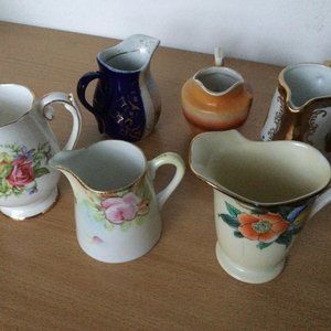 Lot of 6 vintage hand painted milk jars small mixed Japan west Germany England