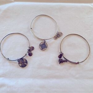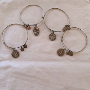 Bundle of 7 Alex and Ani bracelets with different charms, plus 4 without charms. Some tarnish and wear on all bracelets, as pictured.