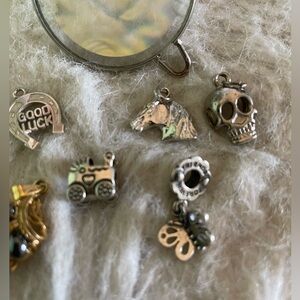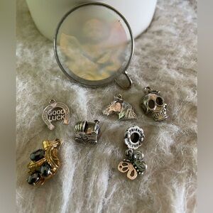 Lot of 7 sterling silver, silver tone and gold tone charms with Pandora Box
