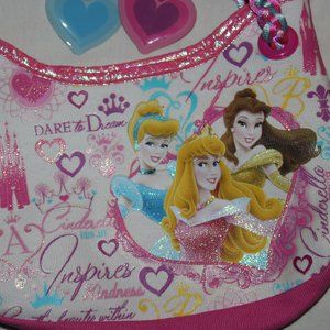 2. Canvas Disney Princess' purse, featuring Belle, Cinderella, and Snow White. Braided handle, Velcro clasp, lined interior.
