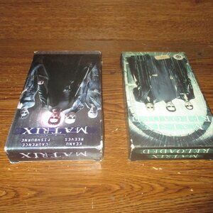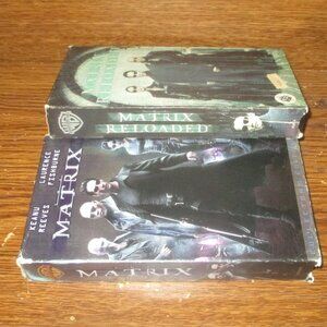 This is a Lot of 2 VHS tapes of Matrix Collector's Edition and Matrix Reloaded. They are in decent condition with wear on the first box, and and some writing on it, the tape is great shape, the 2nd movie has a fair bit of wear on the box and fading, and on the tap it has a bunch of rental stickers on it. All the tapes were play tested by me and worked pretty good without any sound or video issues .... but otherwise they were in pretty good shape overall and had no other flaws. This set is sold as is together as a bundle.