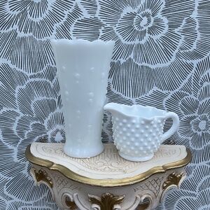 Lot of Two Vintage Milk Glass Pieces Vase & Creamer Pitcher- Creamer is Marked Fenton