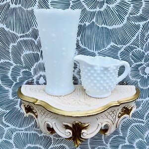 Note: This is a lot not a matched set. The vase is not marked, and is a thin less white milk glass.