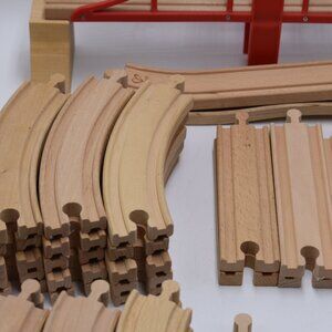 Lot of over 50 Tracks Curves Ramps Straights Ascending Wooden Railway Trains