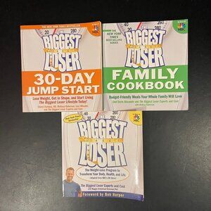 Lot of three Biggest Loser Weight Loss Cook Books - Great preowned condition with a minor amount of wear on covers. Includes The Biggest Loser Weight Loss Program, The Biggest Loser Family Cookbook and 30-day Jump Start.