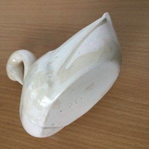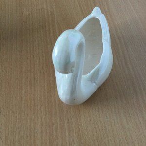 It is a lot of three ceramic small planters/ vases /home decorations with horn, shell, and swan shapes.
