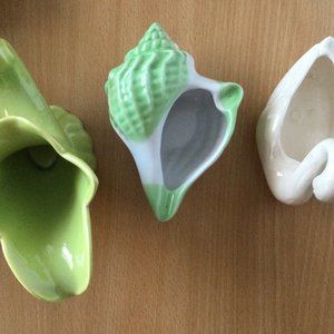 Lot of three ceramic small planters vases home decorations horn shell swan