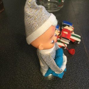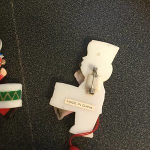 Lot of vintage Christmas items 2 pins, flocked Santa, reindeer, and elf