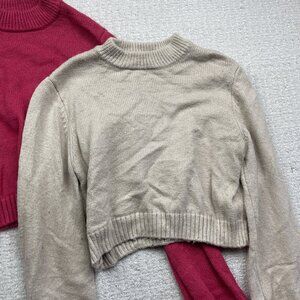 Lot x2 Garage Knit Cozy Sweater Pullover Wom S Beige / Pink Cropped Long Sleeve