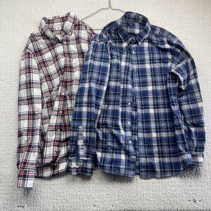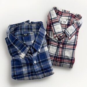 Lot x2 Uniqlo Long sleeve Shirt Mens L Check Plaid Button Up Red / Blue / White*