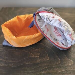• White fabric lining with red and blue bicycle print