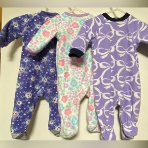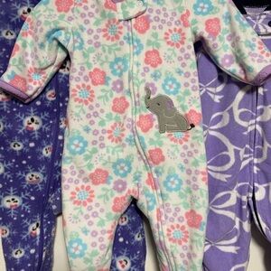 3 winter weight fleece sleepers, size 0-3 months. (Assorted brands)