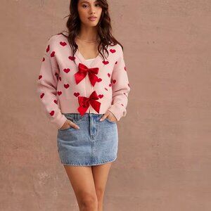 Ribbony red bow details The color of this is listed as 'peach' but it doesn't look peachy to me so... make of that what you will. Leaning towards the lighter end for a sweater No measurement requests on cardigans No brand tag *** shoulder cowl neck strappy layered pleat front waistband drawstring paperbag carpenter straight bootcut skinny mom distressed raw hem cuffed high rise tapered ankle pull on elastic track tearaway chino bermuda biker running japanese board cover up one piece set triangle wrap knit leather infinity blanket printed head wrap tie bow suspenders pocket square arm leg knee crew no show opaque patterned fishnet footless shapewear bodysuit corset bralette push up sports underwire wireless balconette bolero cropped lightweight utility denim faux shearling moto chore coat coat with hood poncho umbrella tall booties block heel wedge espadrilles ballet loafers oxfords brogues driving fisherman gladiator slide flip flops backpack fanny pack wristlet satchel hoodie oversized y2k suitcase cosmetic pouch wallet coin purse keychain beanie beret newsboy kimono sun felt fedora cowboy rain straw puffer vest fleece shearling double layer zip front longline insulated pullover half zip crewneck v neck ribbed lace smock peasant tiered oversized cropped longline tunic belted fit and flare shirt evening gown cocktail jersey gown high neck button down zip up cargo trousers midi maxi racerback a line fitted double breasted lightweight varsity tracksuit leggings yoga joggers