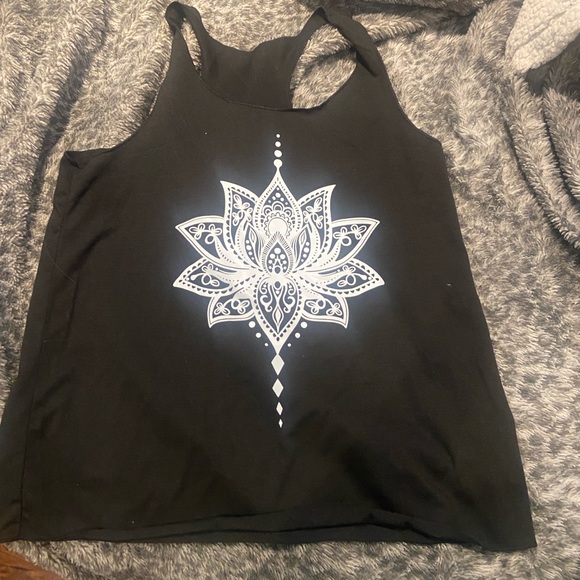 Black and white lotus flower print tank top. Brand I am not sure of. Was given to me but I never wear it. Would best fit a size medium or large. Comfortable fabric for any occasion, pajama wear, lounge wear, or even a flowy summer shirt. No stains or rips anywhere on the shirt. Is not cropped and is longer in length. (free stickers included in every order!) 🫶🏻