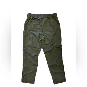 Lou & grey for loft green pants with stretchy elastic waist accompanied by a drawstring button and zipper. 4 deep pockets. Pants are lightweight and soft.