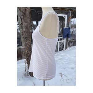 Missing size on tags. Cotton, Rayon blend. Horizontal stripes, semi-sheer fabric. Cross-back straps. No stains, holes or tears. Pet and smoke-free studio.