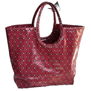 Lou Harvey Tote Large PVC Red Brown Geometric Print Beach Bag Travel Shopping