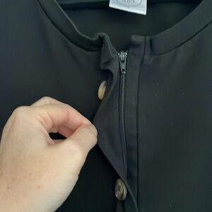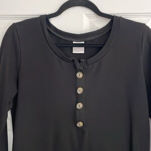 Lou Lou & Company Every Day Maternity and Nursing Dress in black. These dresses are amazing for maternity and breast feeding with their hidden, easy access zipper. This dress is missing the top button but otherwise is in excellent condition.