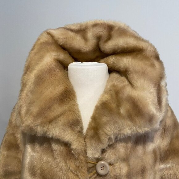 Vintage Lou Ritchie Montreal designer Beige Faux Fur Coat Button Closure Mob wife