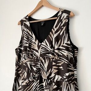 Louben Tropical Leaf Print Sleeveless Dress Size 16