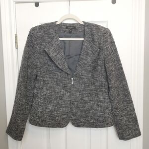 Louben Wool Tweed Blazer Gray Textured Zip Jacket Classic Minimalist Workwear