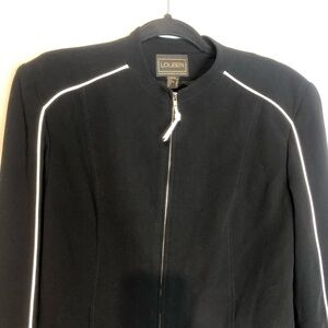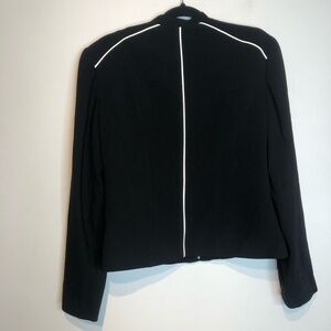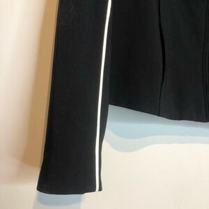 White piping down front of shoulders and arm as well as back of shoulders and down middle back