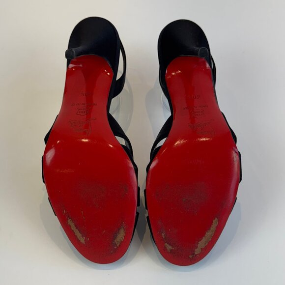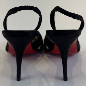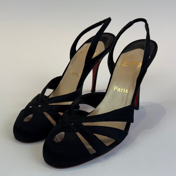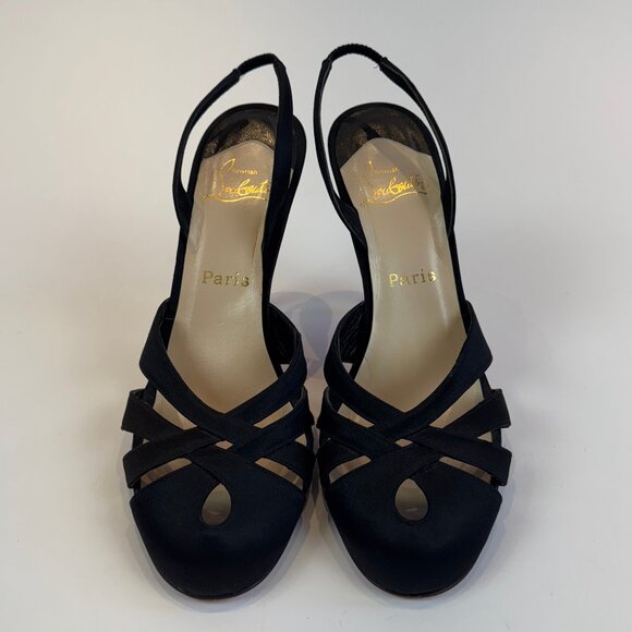 Louboutin Black Satin Cross Front Slingback Heels, EU 40.5