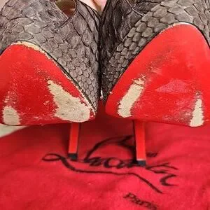 Louboutin Python Peep-Toe Heels