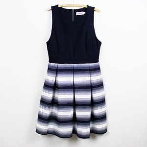 Louche Navy Blue Pleated Striped Sleeveless Midi Dress