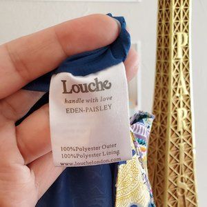 Really cute skater skirt by Louche. Has pockets! Bold paisley print. Pleated detail in front with full back waistband. Really comfortable. Fully lined. Fabric has no stretch. Excellent condition. Some very slight pilling at rear hips. Really sad to let this one go but it's getting too big and deserves to be worn again.