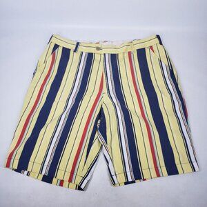 Loudmouth Shorts Men’s Size US38 Striped Bermuda Golf Blue Yellow Red Flat Front