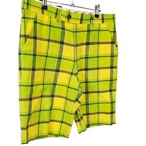Loudmouth Mens Plaid Neon Print Shorts, Golf, Casual, Bright, Cotton, Size 34