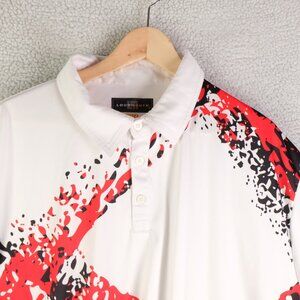 Loudmouth Polo Mens 3Xl White Red Polo Geometric Striped Gold Performance