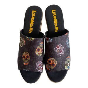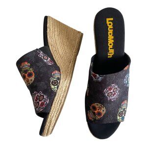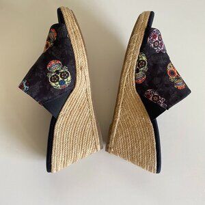 Loudmouth Sugar Skulls Marlene Jute Wedge Sandals S10.5