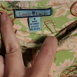 Louie & Lucie Hawaiian Guitar/ Ukulele Cotton Mini Skirt Size Small Green Pink