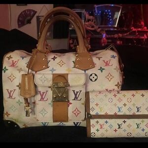 Authentic Louis Vuitton multicolour speedy 30 purse rarely used good condition and matching wallet !! Beautiful set ! Will go sell wallet and purse separate! Contact me with any questions. Such an amazing deal !