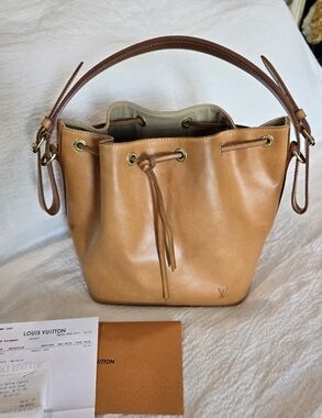 Louis Vuitton Nomad Leather Petite Noe. Made in France. Includes dustbag and repair receipt from Louis Vuitton. Lining was replaced by Louis Vuitton, so date code is missing. Bag is from 2006.