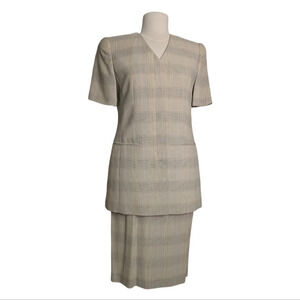 Louis Feraud Set Neutral Plaid Vanilla Girl Blazer & Skirt Size 8/EU 38
