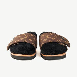 Louis Vuitton 2022 Pool Pillow Comfort Mules in Black Shearling & Monogram Nylon