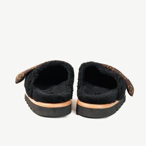 Introducing the Louis Vuitton 2022 Pool Pillow Comfort Mules. Made with luxurious black shearling and trimmed with the iconic LV Monogram Nylon, these mules feature a round-toe design with leather trim and a chic platform for added comfort. Elevate your style with these fashion-forward mules.