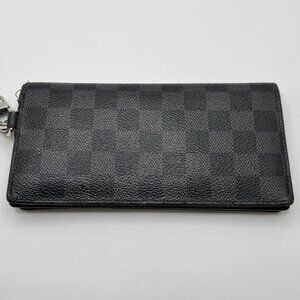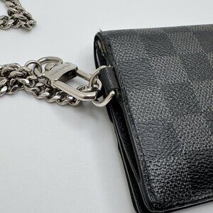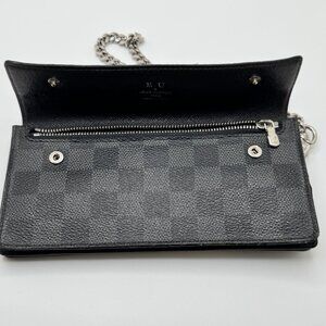 Louis Vuitton Black Checkered Wallet with Silver Chain