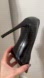 Sleek black patent heels with iconic Louis Vuitton branding. Elevate your style effortlessly.