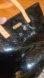 Elegant Louis Vuitton tote bag in sleek black patent leather. Features signature monogram design and tan handles for a chic look. Perfect for any occasion.
