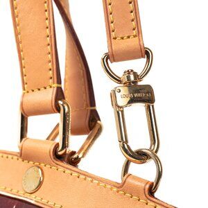 Made in France, this Brea GM tote from Louis Vuitton is crafted with the designer's Monogram Vernis leather in a Rouge Fauviste burgundy, and features natural cowhide leather trim, gold-tone hardware, two top handles, a detachable and adjustable shoulder strap, and protective bottom feet. Fixed with a chained pull, the top zip closure opens to a tonal textile-lined interior containing two slip pockets, and a zip pocket.