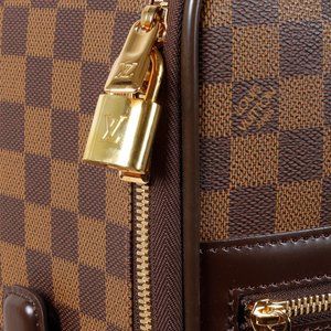 The ultimate luxury travel suitcase, the Louis Vuitton’s Pegase 65 suitcase is crafted from the iconic Damier Ebene coated canvas with dark brown cowhide leather trims and polished brass hardware in gold. This amazing suitcase features a full frontal zipper pocket with a branded leather trim, a reinforced leather top handle, and a sturdy pull-out handle and wheel mechanism to wheel it with you anywhere. Its main wrap-around zipper opens to a spacious interior lined in luxurious yet sturdy synthetic brown canvas and multiple large pockets, two of them used to cover the interior of the suitcase as well. Equipped with a small dust bag, a clothing hanger, a leather luggage tag, the signature LV polished brass lock, and a protective exterior cover, this suitcase is the perfect travel companion.