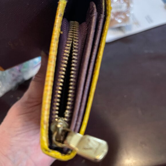 See pictures please as they form the most of my description. There is some high usage signs around the edges, but I've sealed and recoloured the sides to make it much less noticeable and better to last longer for you. Inside is pretty great I must say, again see my pics. This is the gold colour wallet if your monitor shows it differently. I know mine often doesn't show exact colour and one of my photos is a bit off for lighting. The colour though is kind of rustic gold. Still has several years left in it I would say. Keep in mind the flaws around the edges, although repaired still a little noticeable. This is reflective of my pricing. A really great deal for an authentic Louis Vuitton wallet I would say. Date code is in the photos but if hard to read in photo, it's SR1011.